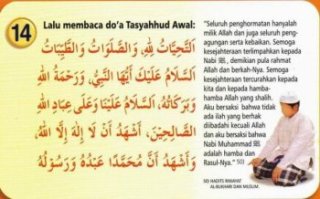 ATTAHIYYATULILLAH WASH SHALAWAATU WATH THAYYIBATS, ASSALAAMU’ALAIKA AYYUHANNABIYYU WARAHMATULLAHI WABARAKAATUH, ASSALAAMU’ALAINA WA ‘ALAA ‘IBAADIL-LAHISH SHAALIHIIN. ASYHADU AN-LAA ILAAHA ILLALLAAH, WA ASYHADU ANNA MUHAMMADAN ‘ABDUHU WA RASUULUH.