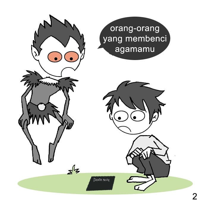 Komik Anime Islami Death Note Posted on April 28, 2020 by Raditya Dika Komik Anime Islami Death Note Komik Islami Lainnnya: – Komik Pahlawan Islam Anas bin Nadhar – Komik Mantan Napi Berulah Lagi – Bantuan Dari Allah Saat Kesulitan – 3 Hal Yang Dilakukan Saat Bangun Untuk Sahur – Kenapa Dia Begitu Cinta Al-Qur’an – Hindari Berkata Kotor – Perang Melawan Hawa Nafsu – Jangan Mencari Keburukan Orang – Komik Islami Tentang Cinta – Jomblo Halu Kepengen Punya Istri – Komik Islami Pakai Yang Kanan – Komik Islami Simple – Jangan Benci Muslimah Bercadar – Waspada 3 Pintu Menuju Neraka – Kalau Sholat Jangan Lari Larian – Perlunya Kerjasama Dalam Rumah Tangga – Baju Koko Vs Jersey – Komik Islami – Dunia Hanya Sementara – Komik Islami Bahasa Inggris – Komik Islami Tarawih Surat Pendek– Komik Anime Islami Death Note – Kisah Pendek Khutbah Jum’at – Menunggu Punahnya Corona – Komik Pendek Islami – Jangan Pernah Menunda Ibadah – Komik Islami Hitam Putih– Komik Islami Salaman Dengan Lawan Jenis – Parno Karena Batuk Corona – Komik Islami Doa Pejuang Nafkah – Komik Islami Muslimah Memanah Dan Tahajud – Komik Islami Hidup Bahagia – Komik Islami Nasehat Dan Renungan – Sejarah Masuknya Islam Ke Indonesia Yang Sebenarnya Selamat Membaca.. Bantu Kami Dengan Donasi.. Dengan Kontak Businessfwj@gmail.com Share this: Click to share on X (Opens in new window) X Click to share on Facebook (Opens in new window) Facebook Like Loading... Related