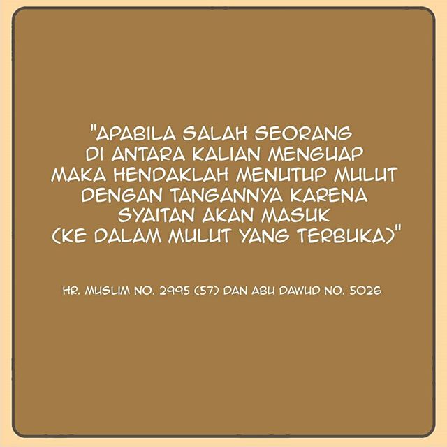 Apabila tidak mampu menahan, maka tutuplah mulut dengan meletakkan tangannya pada mulutnya, hal ini berdasarkan sabda Rasulullah Shallallahu ‘alaihi wa sallam: إِذَا تَثَاءَبَ أَحَدُكُمْ فَلْيُمْسِكْ بِيَدِهِ عَلَى فِيْهِ فَإِنَّ الشَّيْطَانَ يَدْخُلُ “Apabila salah seorang di antara kalian menguap maka hendaklah menutup mulut dengan tangannya karena syaitan akan masuk (ke dalam mulut yang terbuka).” [HR. Muslim no. 2995 (57) dan Abu Dawud no. 5026]