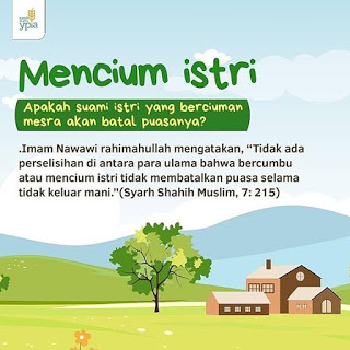 Dari Jabir bin ‘Abdillah, dari ‘Umar bin Al Khaththab, beliau berkata, “Pada suatu hari aku rindu dan hasratku muncul kemudian aku mencium istriku padahal aku sedang berpuasa, maka aku mendatangi Nabi shallallahu ‘alaihi wa sallam dan aku berkata, “Hari ini aku melakukan suatu kesalahan besar, aku telah mencium istriku padahal sedang berpuasa” Rasulullah shallallahu ‘alaihi wa sallam bertanya, “Bagaimana pendapatmu jika kamu berpuasa kemudian berkumur-kumur?” Aku menjawab, “Seperti itu tidak mengapa.” Kemudian Rasulullah shallallahu ‘alaihi wa sallam bersabda, “Lalu apa masalahnya?” (HR. Ahmad 1: 21. Syaikh Syu’aib Al Arnauth mengatakan bahwa sanad hadits ini shahih sesuai syarat Muslim)