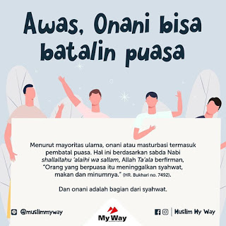 Intinya, onani menyebabkan puasa batal dan wajib mengqodho’, tanpa menunaikan kafarat.