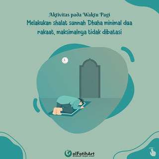 Aktivitas pada Waktu Pagi: Melakukan shalat sunnah Dhuha minimal dua rakaat, maksimalnya tidak dibatasi. Waktu shalat Dhuha dimulai dari setelah matahari meninggi (15 menit setelah matahari terbit) hingga mendekati waktu zawal (15 menit sebelum Zhuhur)