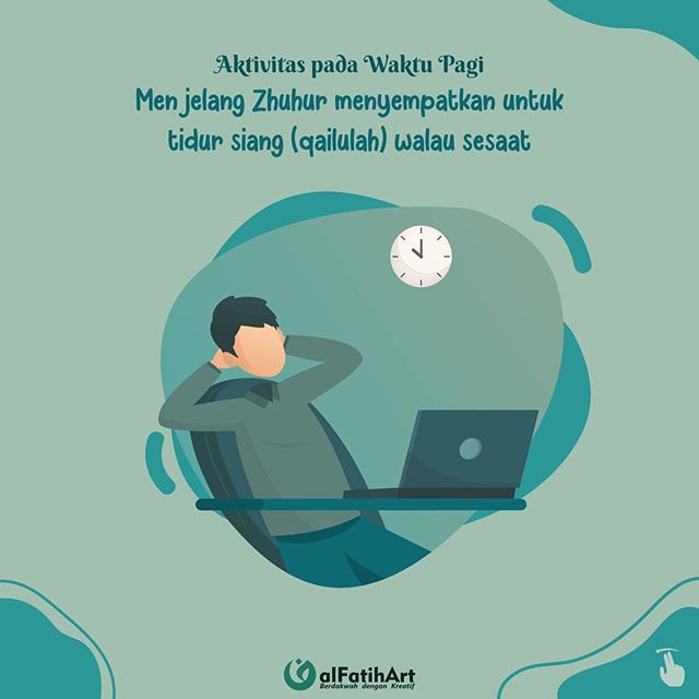 Aktivitas pada Waktu Pagi: Menjelang Zhuhur menyempatkan untuk tidur siang (qailulah) walau sesaat bagi yang mampu untuk melakukannya