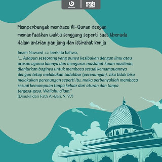 Aktivitas pada Waktu Pagi: Memperbanyak membaca Al-Quran dengan memanfaatkan waktu senggang seperti saat berada dalam antrian panjang dan istirahat kerja