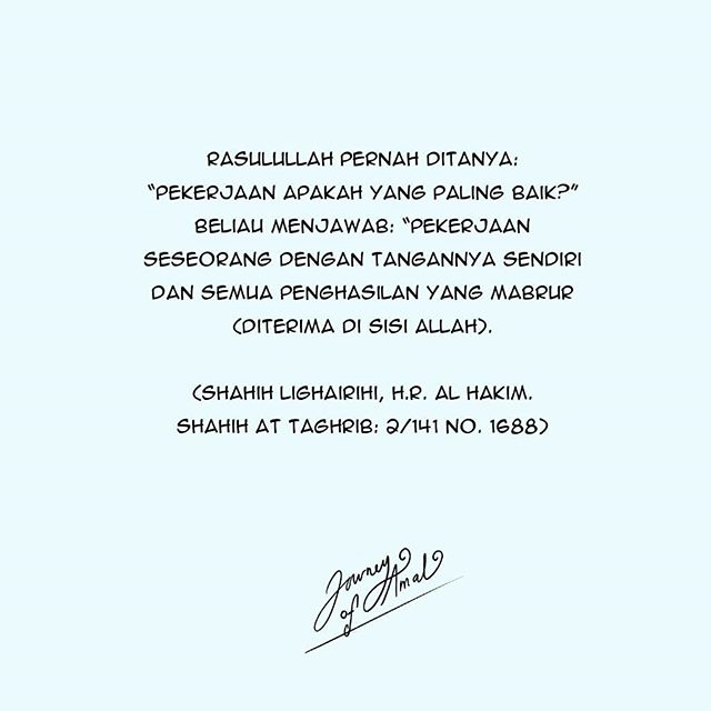 “Bekerjalah kamu, maka Allah dan Rasul-Nya serta orang-orang mukmin akan melihat pekerjaanmu itu, dan kamu akan dikembalikan kepada Allah Yang mengetahui akan yang ghaib dan yang nyata, lalu diberitakan-Nya kepada kamu apa yang telah kamu kerjakan (Q.S. At Taubah : 105)